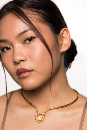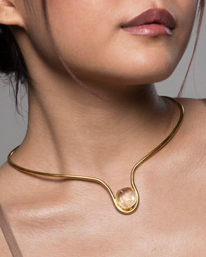 Luna is a masterfully handcrafted collar necklace that combines elegance with comfort. Its gold-plated, hypoallergenic open design is both sleek and sculptural, perfectly framing a radiant crystal centerpiece. This sophisticated piece offers a refined glow, enhancing any outfit with a subtle yet striking statement of style.